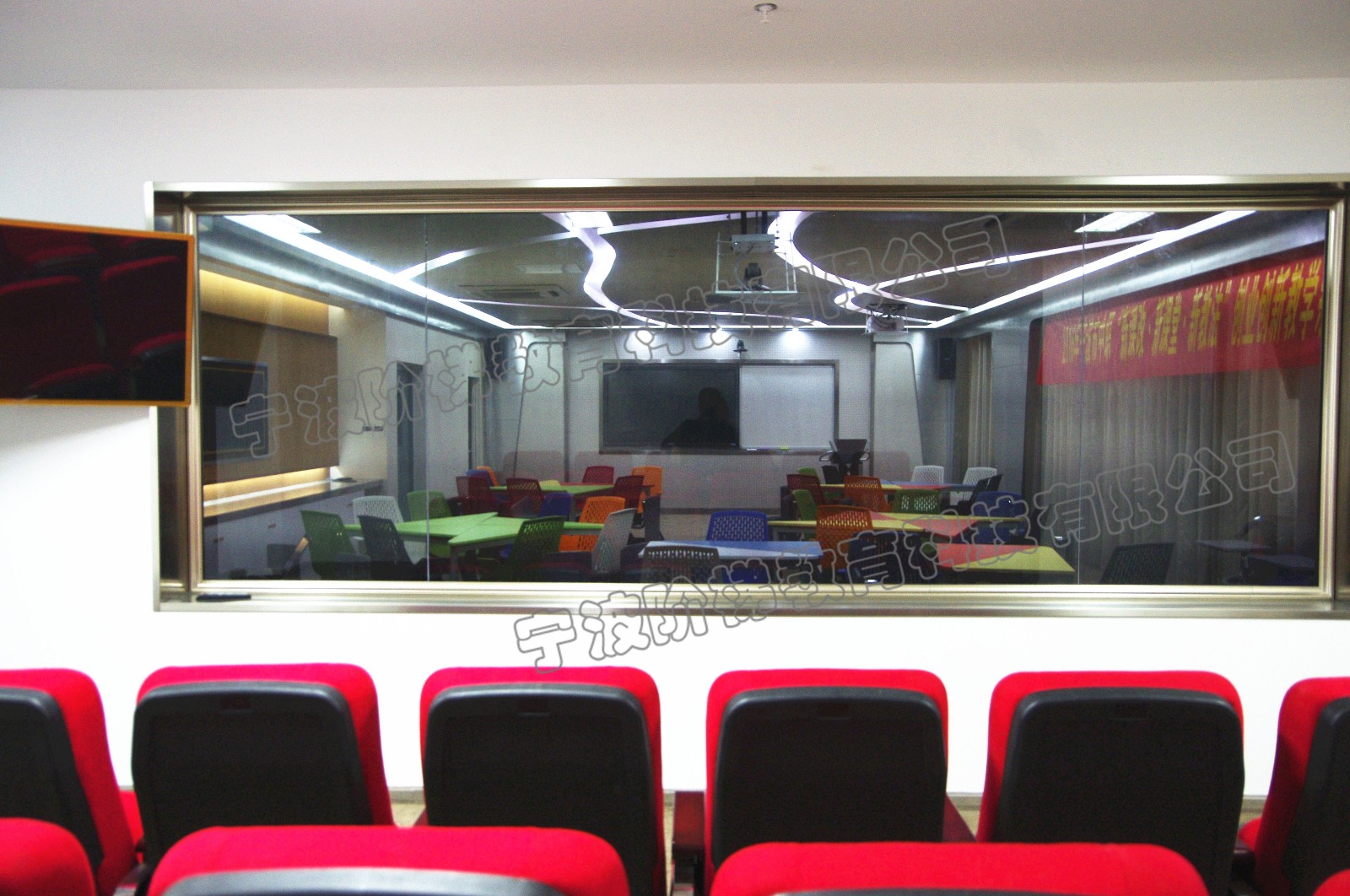 錄播教室主要分為錄播室和觀摩室兩部分,錄播室精心裝修,能立體式、多角度攝像,將課堂實(shí)況進(jìn)行錄制,但不能看到觀摩室情況;觀摩室則可清晰看到錄播室情況,并且配有兩塊屏幕,同步播放錄制畫面及教師課件。